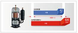 单机容量扩展 压缩机搭载尖端技术,功能更 强劲,性能更高效。创新使用 直流变速双转子压缩机,转速 范围更宽广。 |