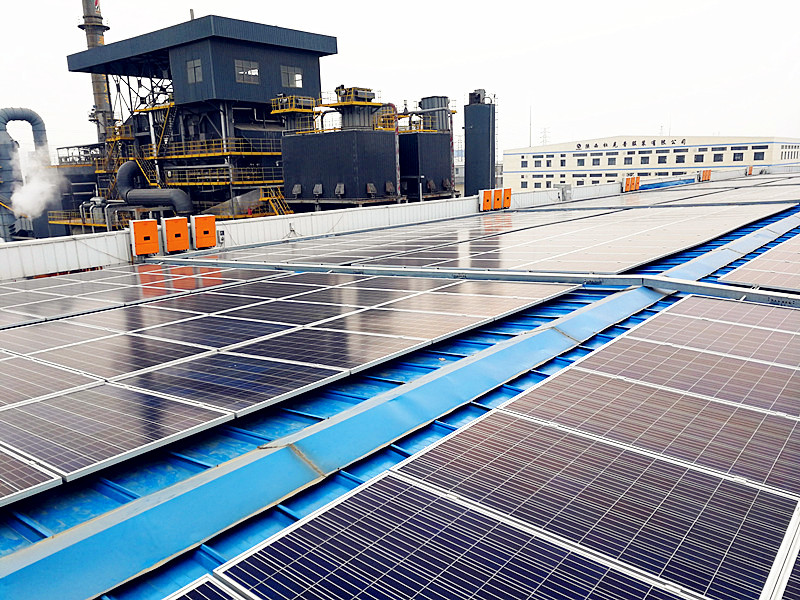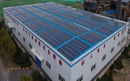 本项目建于咸阳新兴纺织工业园纺织三路陕西煤化咸阳新型热能有限公司物料仓屋顶上,屋面长为80米,宽为48米。光伏电站装机容量为500kW,年发电量约为50万度。
